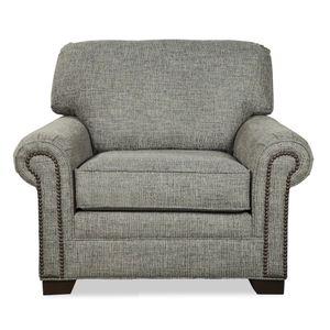 In this updated classic Elevation Chair from Craftmaster, casual sophistication comes to life. Dark brass nail heads adjust the panels of the arm and accentuate the plissed arms. Tapered block legs provide this basic yet elegant look with a modern touch. This loveseat is upholstered for comfort and easy maintenance in a special dark blue Revolution Quality material. Read More