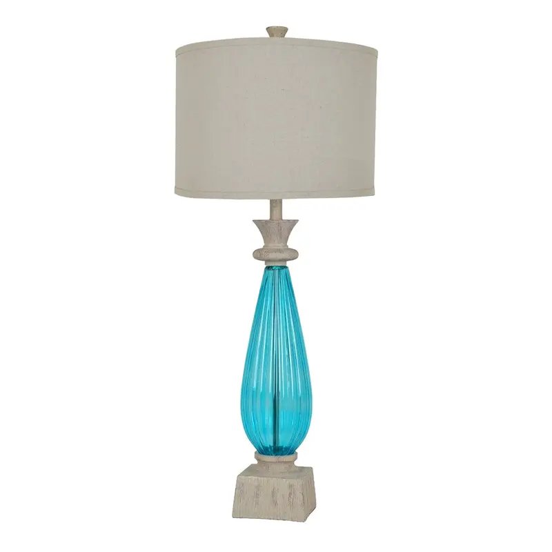 Sferra Table Lamp 39"Ht.,Glass & Resin Sea Blue Glass & White Washed Wood Finish 16 x 16 x 11 Natural Linen ShadeRead More