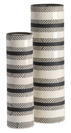 The Crestview Collection Quiver Vases are cream-colored tubes, detailed with a black feather pattern that encircles both vases in this set. The vases are made of ceramics and will be ideal for floral arrangements or some peacock feathers.Read More