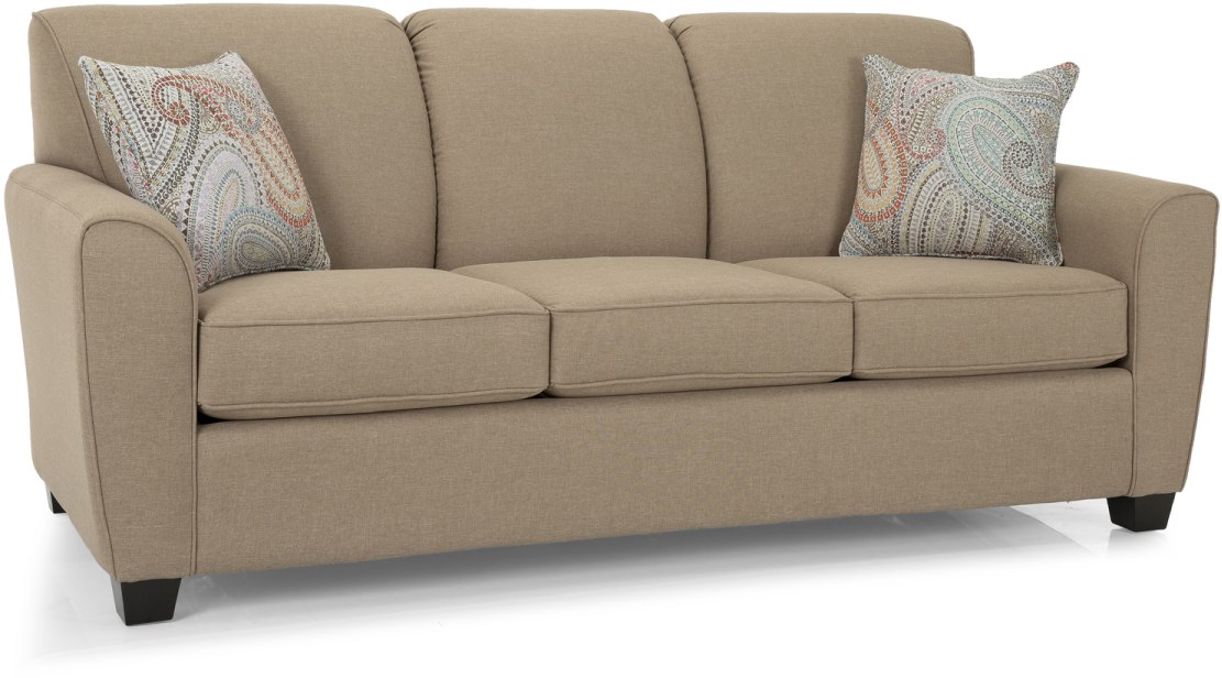 Tight back sofa with curved arms is great for small spaces as it is available in a 77” Condo size. Also offered a double or queen sofa bed. Canadian made quality.Read More