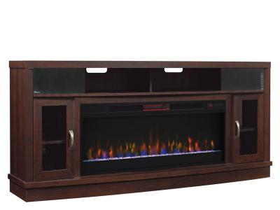Create an enviable home theater setup with the addition of the Deerfield Electric Fireplace Entertainment Center in Antique Brown Cherry. You're going to love the multiple features of this all-in-one cabinet. You'll first notice the unit's large size. At just over 70" wide, you'll be able to easily fit a flat screen TV up to 80" in size. The split, open center shelf is perfect for your cable box and DVD player, while the two side cabinets offer additional storage for your DVD collection and accessories. Integrated cord management holes ensure your cables remain neat and tidy for a clean, mess free look. Integrated into the console is a two speaker sound system that create a surround sound experience right in your living room. The speakers have both input jacks as well as Bluetooth connectivity, so you can watch your favorite movies and listen to music with powerful, all encompassing sound.