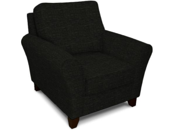Paxton Chair features flared arms and exposed dark wooden legs.Read More