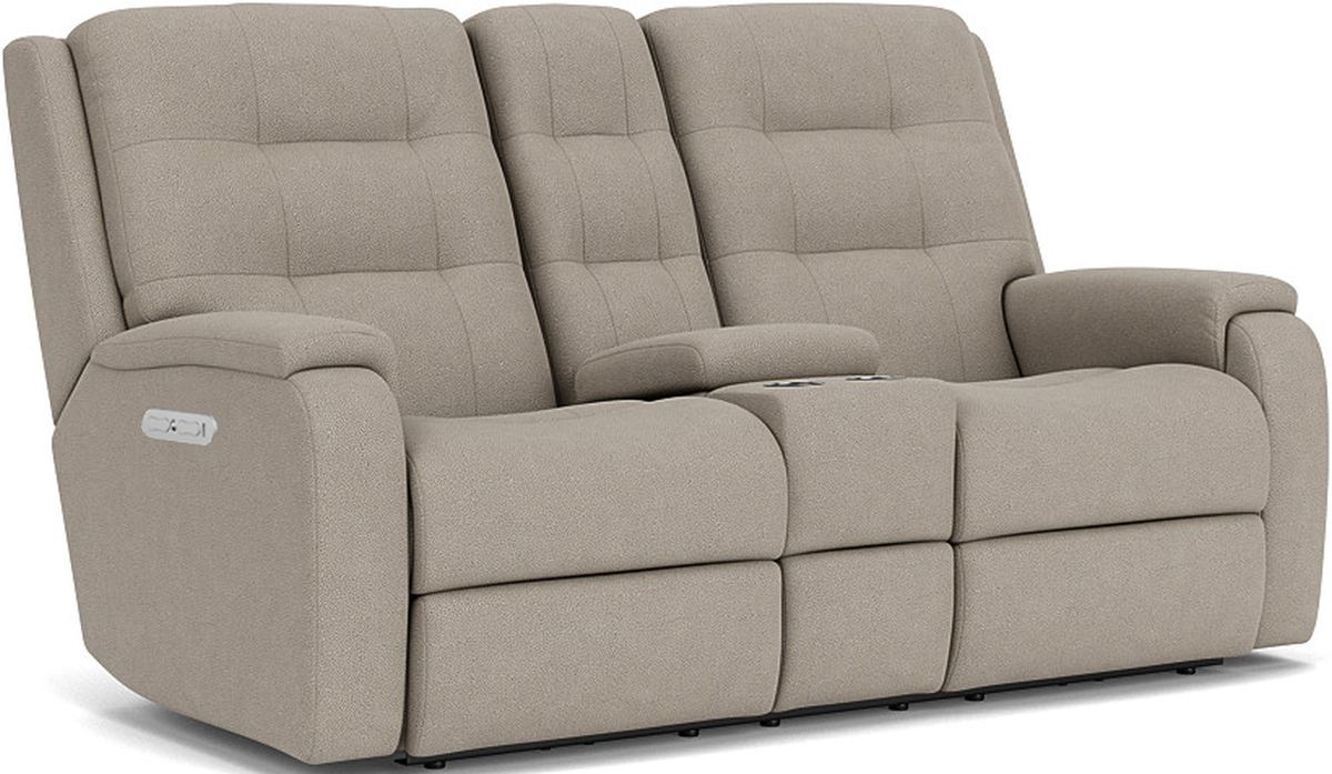 Get premium support for your back and comfort you can customize with the Arlo Power Reclining Loveseat with Console and Power Headrests and Lumbar. Contoured seats with chaise pads take pressure off your legs as you sit, while our patented DualFlex Spring System™ provides firmness and flexibility.Read More