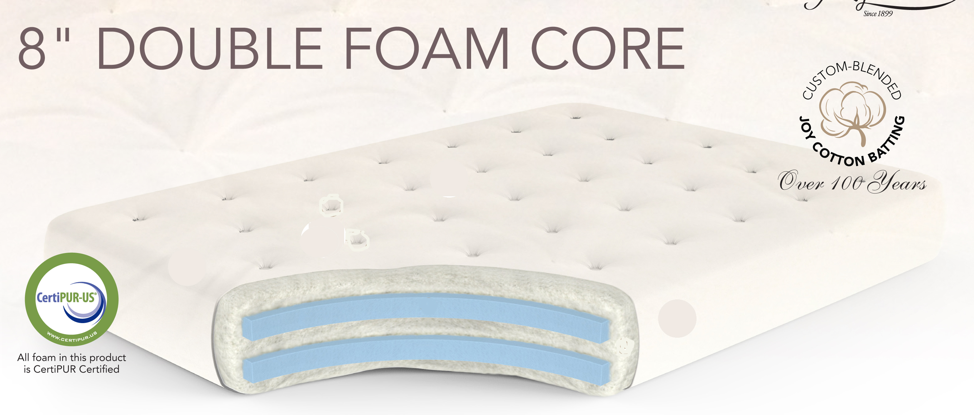 40 lbs of custom-blended “JOY” cotton batting, the densest most durable in the world, using nothing but the purest cotton picker and linter available.