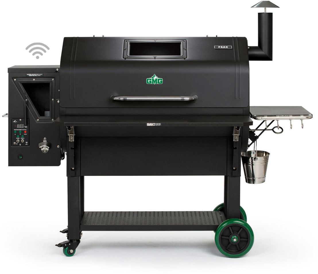 The PEAK PRIME model comes with a redesigned digital controller that allows you to control and monitor your grill through our iOS or Android mobile application, dual meat probes and a USB port. With the new grill and pellet view windows you can keep an eye on your food without letting smoke/heat escape and see your pellet supply. Our 13.5 in. peaked lid provides enough space for a stand-up chicken to a dozen racks of ribs. Keep all of your grilling tools handy by hanging them on the utensils hooks of your side convenience tray. All of our grills have a venturi-style firebox that creates a cyclone flame that ensures maximum combustion. They also have Sense-Mate, a thermal sensor that constantly monitors the ambient temperature. When the weather gets cold, the sensor kicks the grill into Turbo Mode, so you don’t have to wait long for the grill to heat up! Other features include Keep Warm Mode and Fan Only Mode with automatic shut-off to blow ash out of the firebox after you finish grilling.