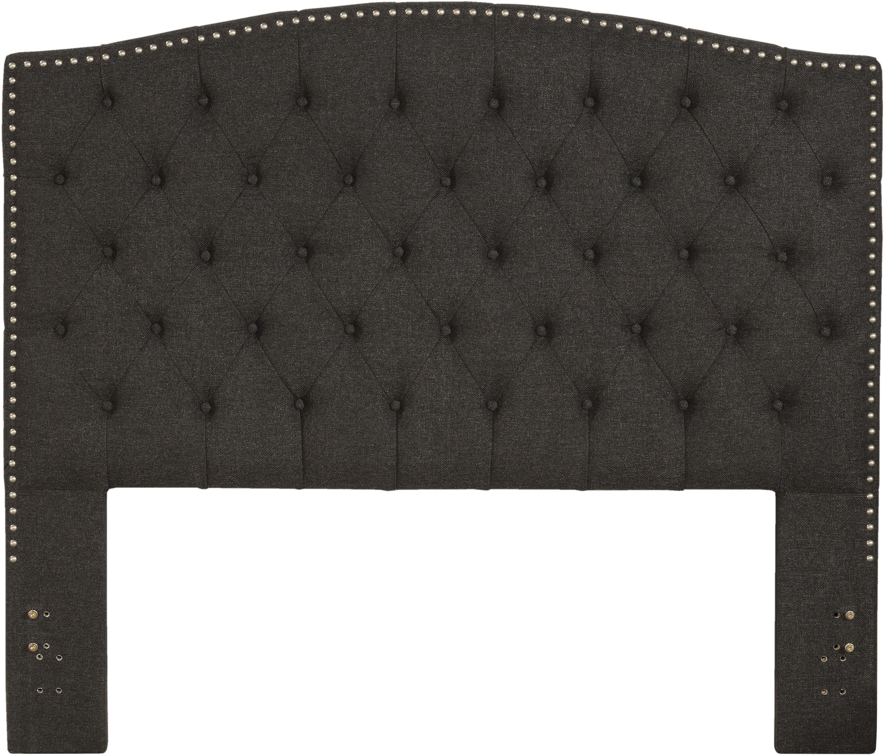 The Lila headboard marries simplicity with subtle embellishments to bring forth a look that's both sophisticated and unique. This tufted upholstered headboard features a modest camelback design with button accents and nail head trim that establishes style continuity.