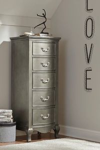Construction Hand crafted using Eastern US Poplar and veneers over engineered wood, this collection is available in either finish, Antique White or Antique Silver. Five Drawers; Lacquered drawer boxes; the top drawers are felt lined. Four piece drawer boxes with dovetail joinery at the front and back of the drawer. Full Extension, Side Mounted, Ball Bearing Drawer Guides. Hardware bails with crystal centers, adding a touch of tasteful Bling. Bench built with kiln dried solid poplar frames. Dust mite protection at the bottom of each case. For added strength, the case good backs are inset and screwed in place. Material: Poplar Wood, Veneers, Engineered Wood.