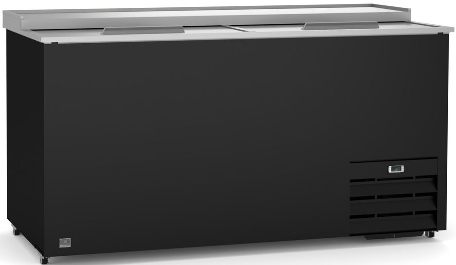 Bottle cooler with slide top. Exterior back and side panels in painted steel, exterior bottom panel in galvanized steel, top panel in 304 stainless steel; interior back and side panels in 430 stainless steel, interior bottom panel and worktop in 304 stainless steel.Read More