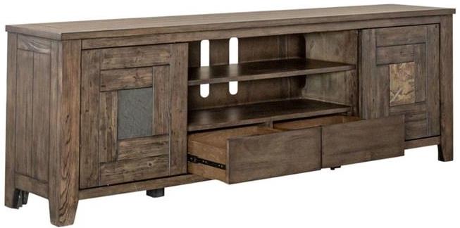 If you enjoy rustic the Arrowcreek 76" TV console is for you. The mix of elements makes this piece versatile enough to go from a lake house to an industrial loft in the city.