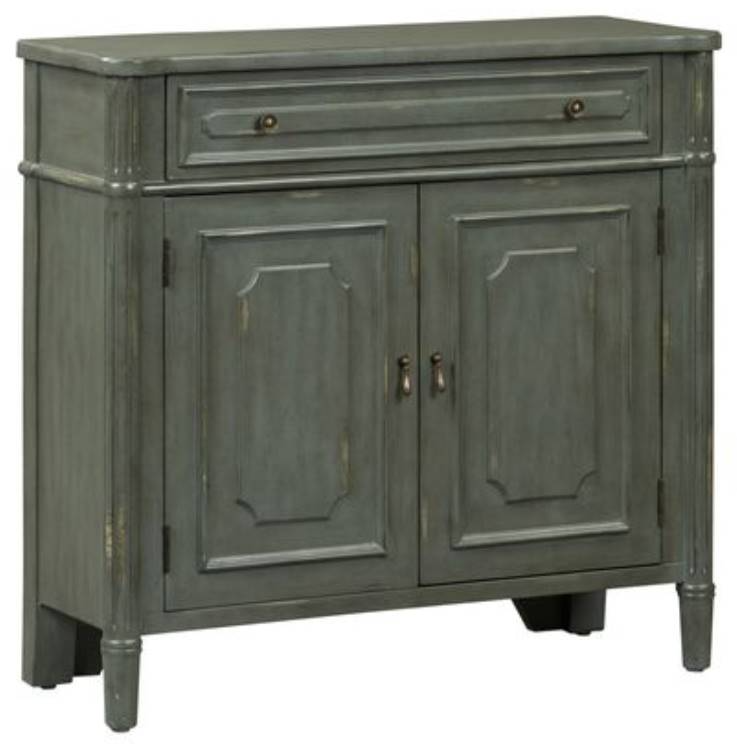 Update your space with the timeless Madison Park accent cabinet. Crafted of eucalyptus solids and MDF, displaying a grey finish with white rub thru. Features one drawer and two doors with shaped overlay front panels with round pilasters and one fixed interior shelf behind doors. Designed to work in any decor from farmhouse to traditional. SN: XXX470Read More