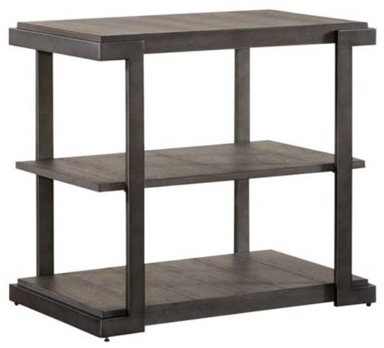 Elevate your space with the simplistic Modern View tiered end table. Crafted of metal with split heart oak veneers, this piece features a gauntlet gray finish with wire brush distressing, two additional shelves with a beautiful open shelf design, anchored by pewter metal legs. This unique table would make a great addition to any contemporary home.Read More