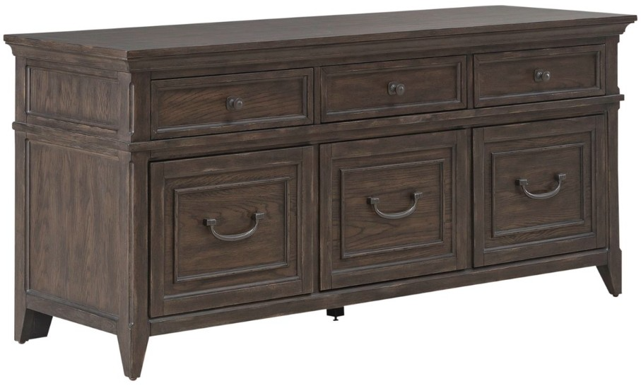 Take the stress out of work with the Paradise Valley credenza. Crafted with rubberwood solids and split heart white oak veneers, this piece features a saddle brown finish. The credenza showcases a bread board veneer patten on the top.Read More