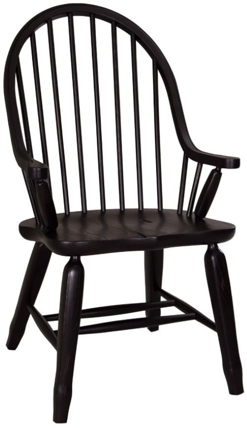 Sit in style with the Treasures bow back arm chair. Crafted of rubberwood solids, this piece features a rustic black finish, nylon chair glides to protect your flooring, and saddle shaped seating for added comfort. This chair is available in an alternative finish.Read More