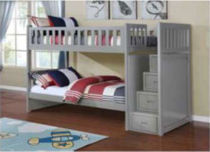 Elevate your bedroom idea with this Twin/Twin bunk bed with a ladder chest from Lifestyle. Shown in a grey finish, give this bed an alluring appeal. With its beautiful design, this bed will make a statement in your bedroom.Read More