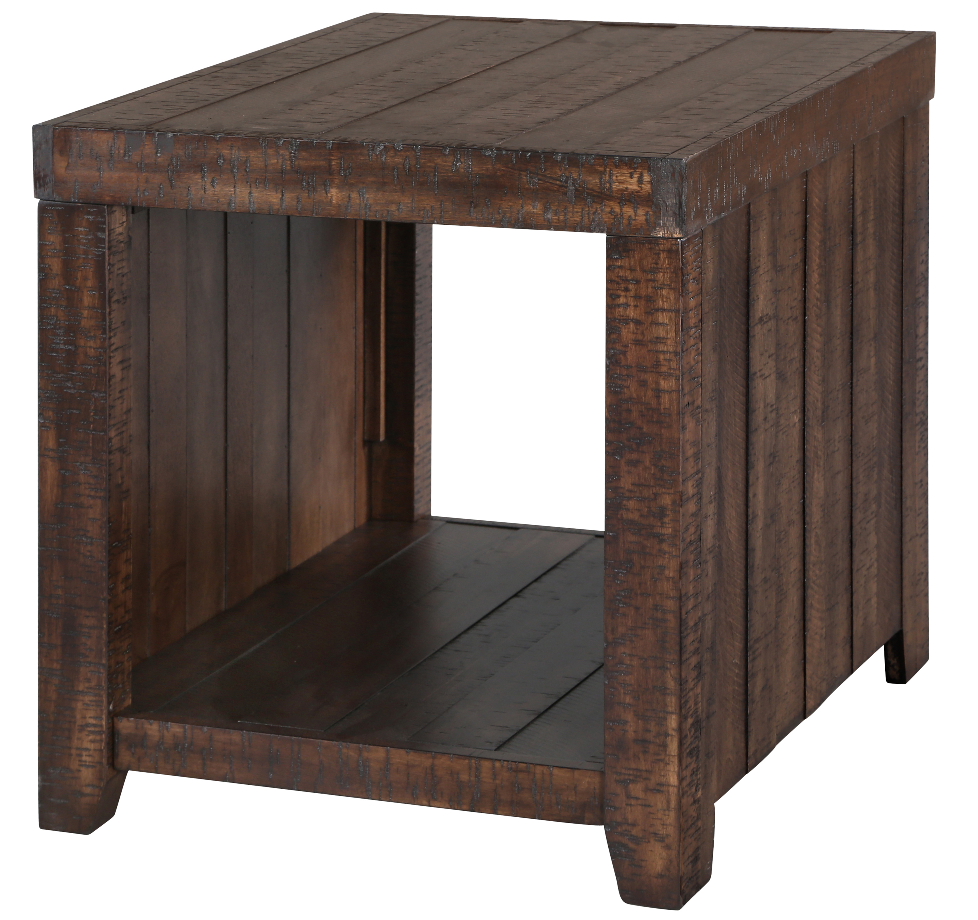 Magnussen® Home Caitlyn Rectangular End Table with distressed natural finish and hardwood solids constructionRead More