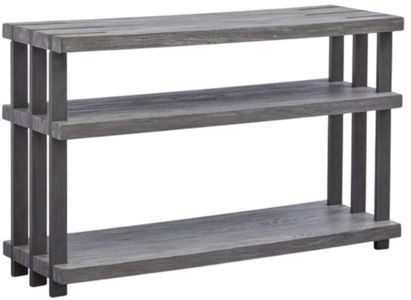 Functional, stylish and versatile—the Eldridge table collection offers a new twist on refined rustic styling. Designed with plenty of room for storage and display, its eye-catching silhouettes boast an intriguing mix of wood and metal elements that make a bold statement in mixed materials. Crafted with open sides and vertical metal supports, its industrial charm is brought to life with a Weathered Gravel finish over primavera veneers and metal accents in Satin Bronze. Seamlessly marrying wood and metal to stunning effect, this distinctive table collection will add visual texture and dimension to any home décor.
