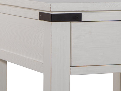 Elevate your living room with this Harper Springs Shelf End Table from Magnussen Home®. Shown in silo white finish, this table features metal brackets on top edges and metal caps on feet. Make a bold statement by incorporating this stunning furniture to your home.Read More