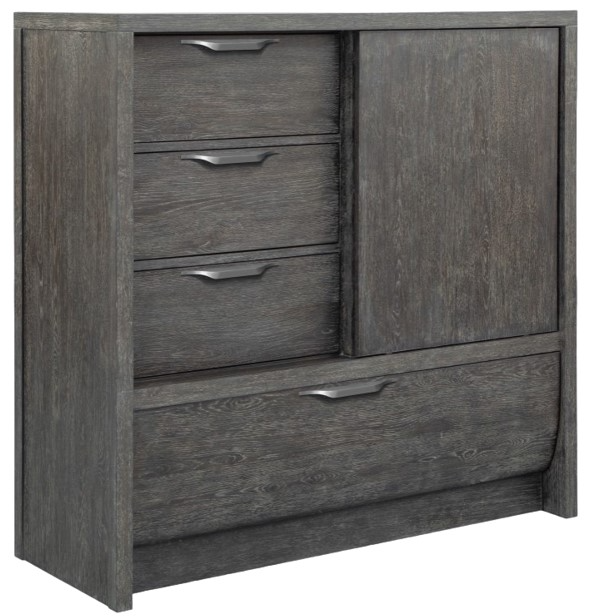 The Kinsley Collection Sliding Door Chest embodies a harmonious blend of functionality and modern elegance, making it an ideal bedroom addition. This piece is finished in a soothing gray, offering a neutral palette that easily complements various decor styles.Read More