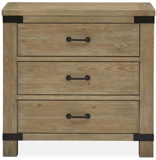 Magnussen Home® Madison Heights Weathered Fawn Bachelor Chest features 3 drawers with the collection's signature forged iron hardware. SN: XXX644Read More