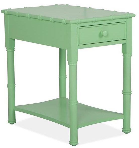 Complete your living room design with this chairside end table from Mosaic collection. Shown in mint green finish features 1 fixed bottom wood shelf and 1 tinted drawer. This piece will add style to your room.Read More