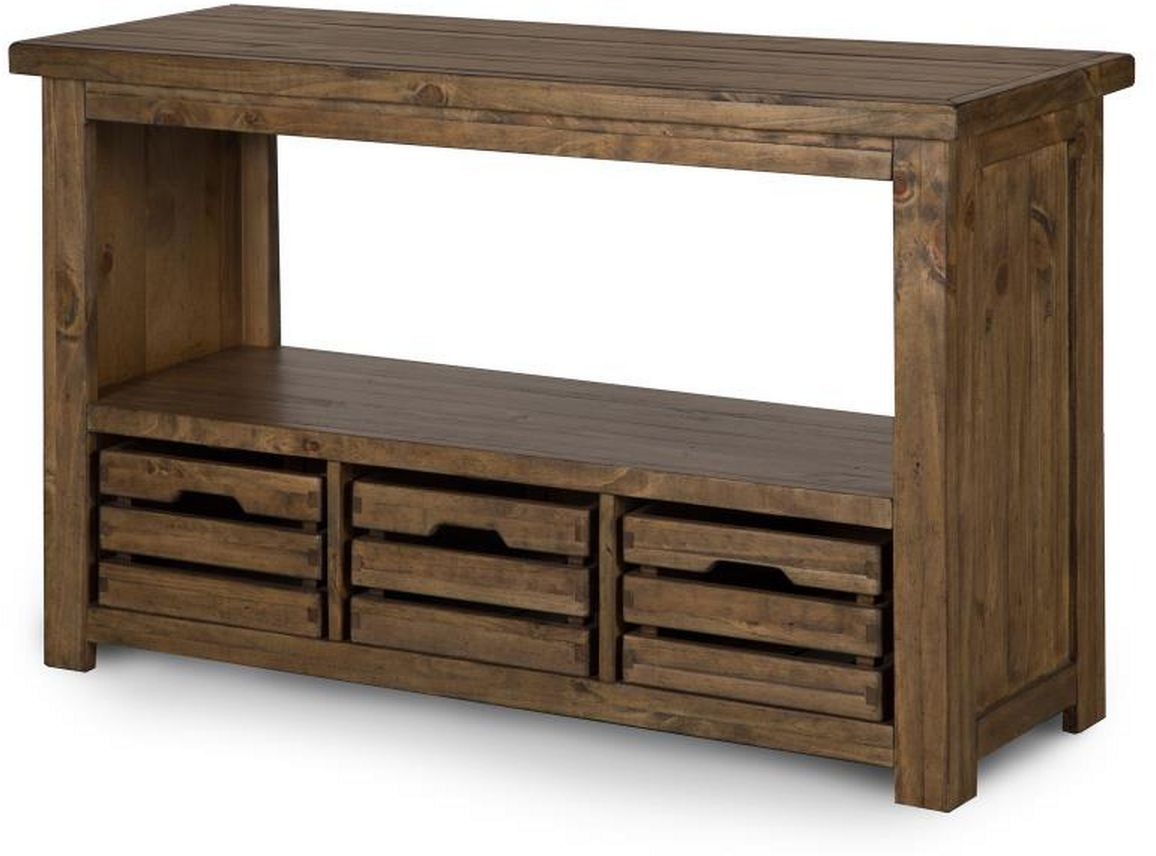 The Stratton collection is a stylish storage solution that adds a dash of rustic charm for any entertaining space. Embellished plank design finished in warm nutmeg with weathered bronze hardware. Stratton features removable crates to help maximize your storage needs as well as a useful lift-top.Read More