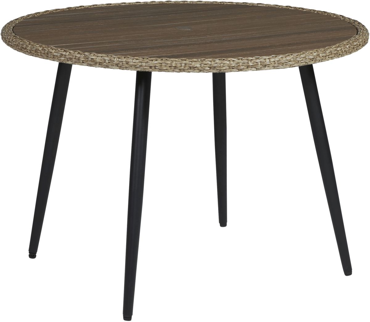 This round outdoor table sets the standard for alfresco dining. Its powder coated steel frame and resin tabletop are ready to withstand the elements for seasons to come. The dining table's cool two-tone color scheme adds another layer of interest to your outdoor decor.Read More