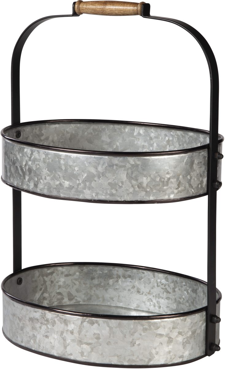 This two-tiered tray is waiting for you to create a personalized vignette. Designed with two metal tiers and wooden handle for easy transport, it's ready as a centerpiece when you entertain or corral your keys when the party's over. Its French countryside style is perfect in the entryway, bedroom or gracing your dining or living room table.Read More