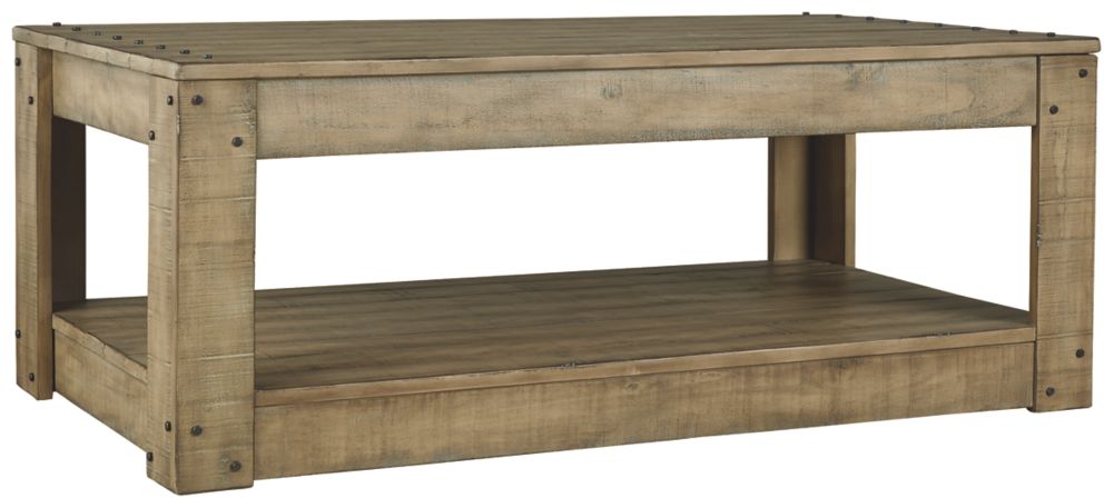 This cocktail table brings a gentle rustic feeling to your space. With prominent hardware and chunky styling, this piece adds a simple yet sturdy structure to your room. When great home design is your mission, this table is unshakeable.