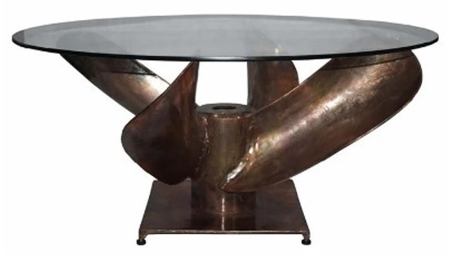 Complement your decor with this Emelia cast metal propeller design Cocktail Table from Stylecraft. Finished in antique bronze with a clear glass table top. Elevate your living area by incorporating this cocktail table into your home.Read More
