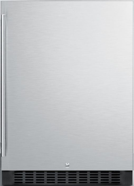 SUMMIT's SPR627OS Series features built-in all-refrigerators equipped with user-friendly features for convenient use in any outdoor kitchen. The SPR627OS is a 24" wide all-refrigerator that can be used built-in or freestanding in any outdoor or indoor location. It features a jet black cabinet and reversible stainless steel door with a professional style handle. A factory installed lock offers added security. Inside, this frost-free refrigerator includes an internal fan for an evenly cooled interior and a recessed LED light for an elegant yet energy efficient glow. The digital thermostat (located in the interior) allows you to adjust the temperature at the touch of a button. Adjustable glass shelves make it easy to organize the 4.6 cu.ft. interior. The floor is specially slotted to hold bottles in place. This unit has a flat door liner to accept larger trays. For optional door storage, add our SHELFKIT627. With a stunning design and convenient features, SUMMIT SPR627OS is the ideal finish for any outdoor or indoor kitchen. For a matching freezer, see the SPFF51OS. This unit is ETL-S listed to NSF-7 standards for use in commercial establishments and is ENERGY STAR certified as a commercial refrigerator. It also meets DOE standards for residential applications, using 25% less energy than the maximum allowed for this product class and capacity.