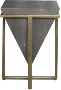 This upside down pyramid is finished in an elegant gray faux shagreen, nestled into an iron base finished in aged gold.Read More
