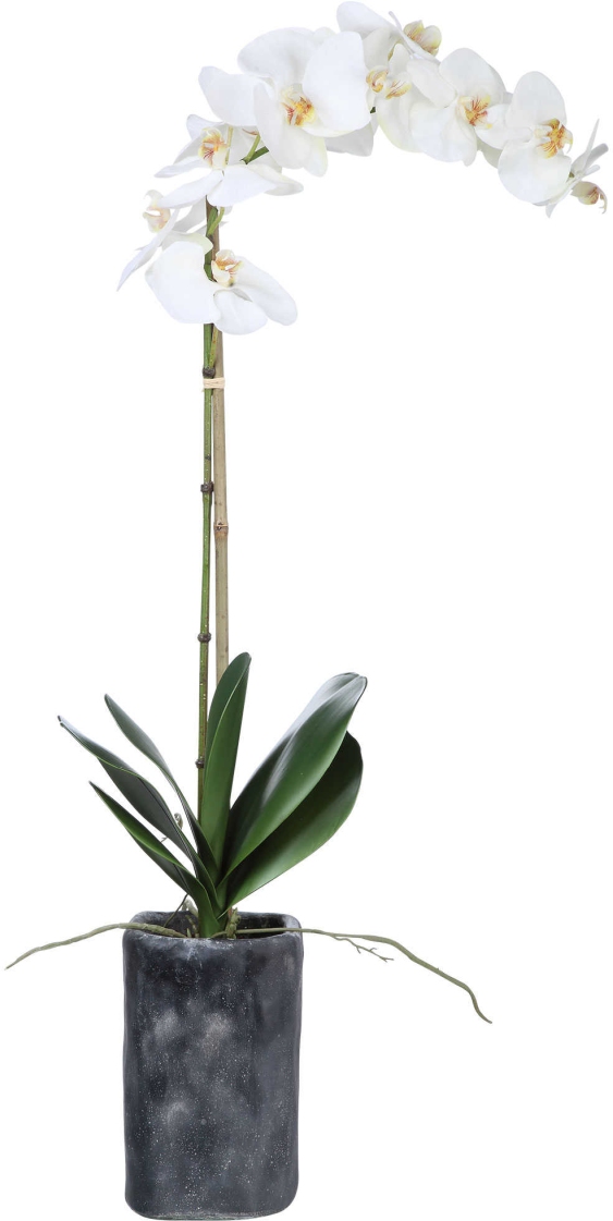 A Gracefully Arching Stem Of White Orchids Over A Bed Of Faux Potting Soil, Placed In A Contemporary Mottled Charcoal Gray Concrete Planter.Read More