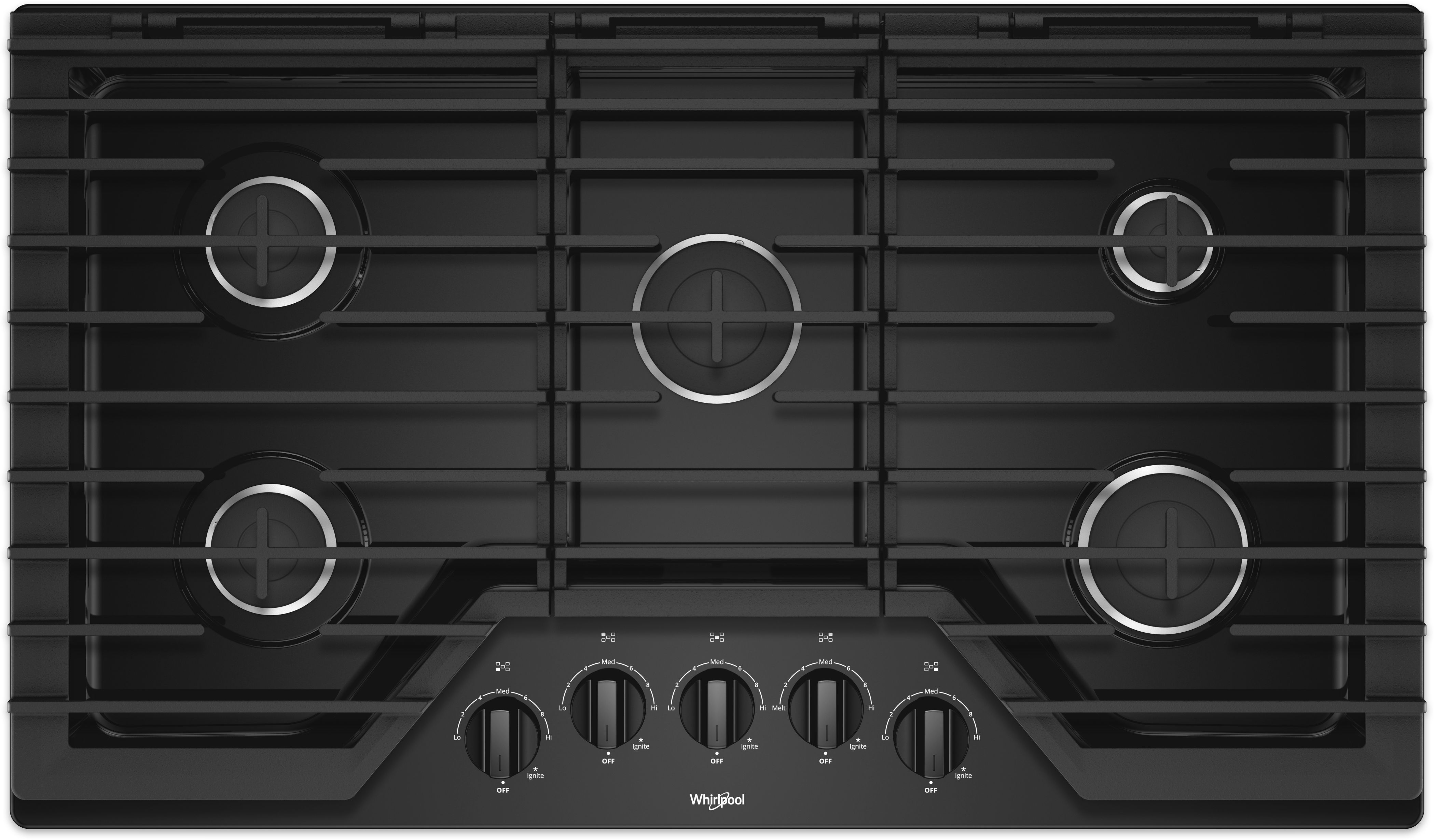 Whirlpool® 36" Gas Cooktop-White with 5 burners, dishwasher-safe knobs and cast-iron grates. SN: XXX367Read More