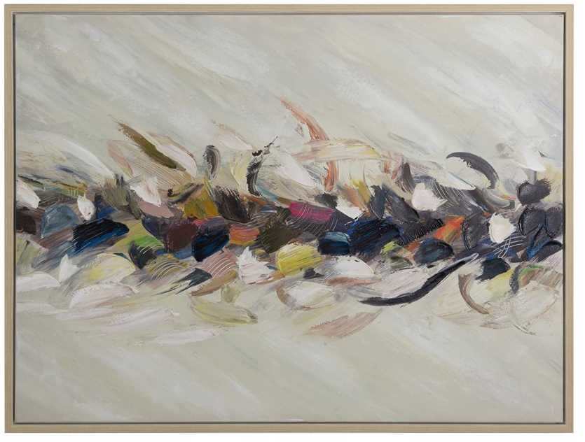 This abstract hand-painted work of art enhances a spirit of relaxation and movement. The naturally weathered frame defines the image as you display it on your wall. Hanging weight 6.5 lbs.Read More