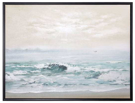 This sea hand-painted wall art enhances a spirit of relaxation and movement. It features a black frame. This wall decor will compliment any style of home or office. Incorporate this wall art into your home.Read More
