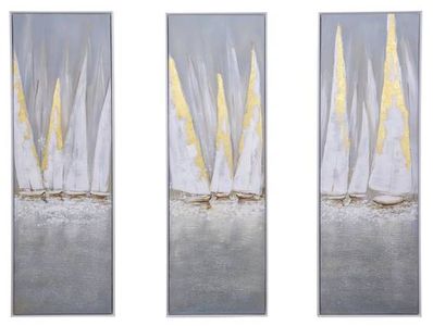 Come sail away, this costal inspired 3-piece wall art is hand painted and uses texture to bring depth to this décor. The metallic gold leaf details are accented along the sails, adding a touch of glamour to this otherwise relaxing artwork. Read More