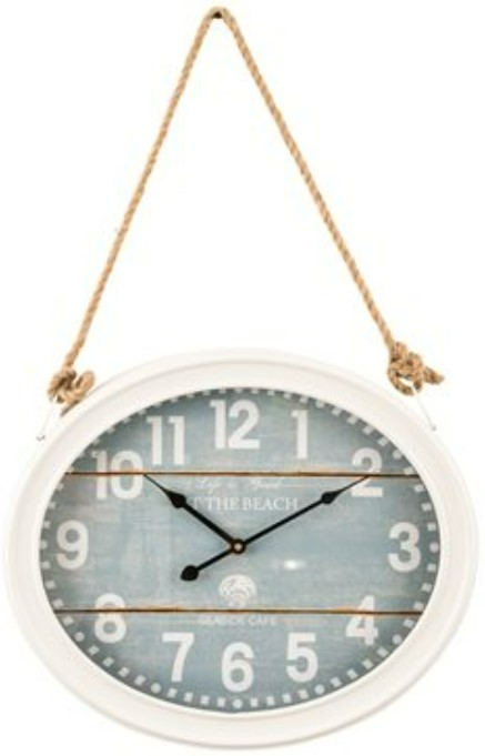 This trendy wall clock from YHD will add charm to any space in the home. The face of the clock is light blue and the frame is cream with white, bold numbers circling the inside of the clock. Thick rope knotted on both sides of the frame doubles as the hanging device for this stylish wall clock.Read More